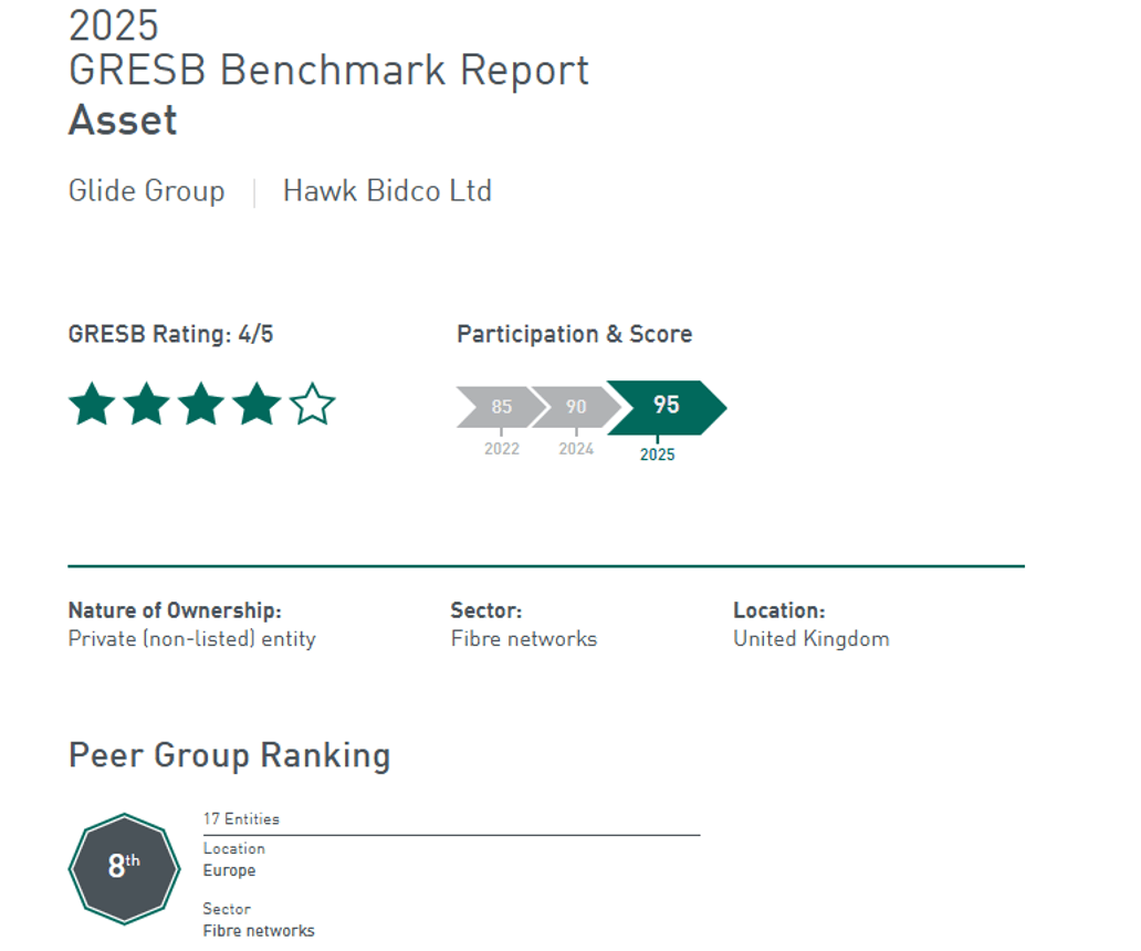 Glide scored 95 out of 100 points, GRESB confirmed a 4-star rating was achieved.