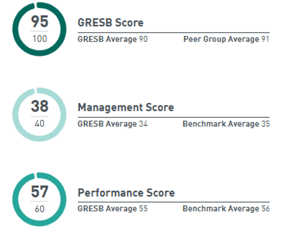GRESB operates a scoring methodology based on quintile position, not just simply the score achieved out of the maximum 100 points available. The rating scores are dependent on all participants and the scores achieved. The ratings are calibrated annually, based on the overall results of participants.